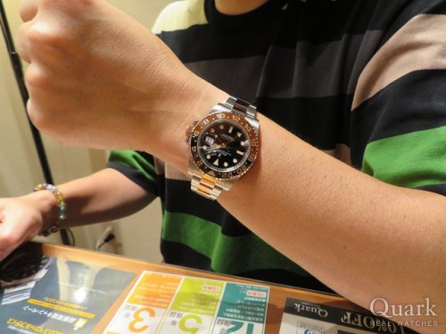 O様 いつもクォーク銀座888店をご利用頂き誠に有難うございます。様々な選択肢があるなか、今回お選びになられたGMTは、お洒落なO様にはベストな選択だったと思います。コンビモデルをスマートに着けれる方は少ないと思い、最終的にお勧めさせて頂いた次第でございます。末永くご愛用頂ければ幸いでございます。引き続き宜しくお願い申し上げます。 クォーク銀座888店 店長 日笠山