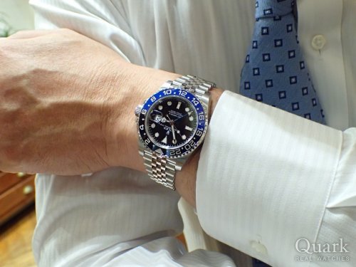 M様 この度はクォーク神戸店をご利用くださいまして、誠にありがとうございます。M様のお話しがとても楽しくて、素敵な時間をご一緒できたことにも、お礼申し上げます。仕事が出来る方は、トークもやはりお上手ですね。さて、今回お買い上げくださいましたGMTマスターII Ref.126710BLNRは、24時間表示のセラミックベゼルにジュビリーブレスレットという、ロレックス初の組み合わせで話題を集め、発売から1年が経った現在もお問合せを多くいただく人気モデルです。M様に仰っていただいたように、ブラック×ブルーの配色が綺麗でお洒落ですね。M様にとてもよくお似合いで素敵でした。愛車レンジローバーとの2ショット写真もまた拝見させて頂きたく存じます。お待ちしておりますので、是非弊店へ遊びにいらしてくださいませ。知識が豊富なM様ですので私の出番はないやもしれませんが、ご愛用されていく中で気になることなどございましたらお気軽にご相談くださいませ。今後ともクォーク神戸店をよろしくお願いいたします。