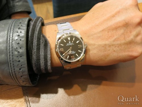 M様この度はクォーク福岡店をご利用頂きまして誠に有難う御座います。お買い求め頂きました『EXPLORER I / Ref.214270』は厳格に時を刻み視認性の高さとレザージャケットとの組み合わせはまさにM様にピッタリだと思います。M様のこれからのご活躍を祈念いたします。これから新しい相棒としてご愛用頂けたらと思います。何かご不明な点がございましたらお気軽にご相談下さい。またブレス洗浄ブレス調整は無料で承っておりますのでご利用下さいませ。今後とも末永いお付き合いの程、宜しくお願い申し上げます。クォーク梅田店 相馬