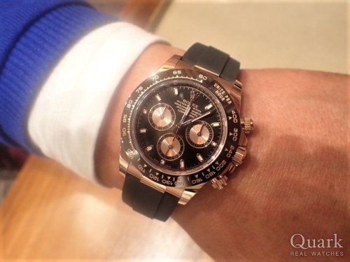T様、この度はクォーク神戸店をご利用頂きまして誠に有難うございました。日頃よりご贔屓下さり心より感謝を申し上げます。今回ご購入頂きました Ref.116515LN(黒ピンク目)は、2017年から生産されているオール18Kピンクゴールドのデイトナです。2017年から革ベルトからラバーベルトに変わり、スポーティかつ着け心地も良くなりました。上品で色味のバランスも絶妙で最高にカッコいいですよね。とてもお似合いで、素敵でございました。末永くご愛用頂けましたら幸いです。今後もご指名頂けますようしっかりとサポートをさせて頂きます。何かご要望などございましたら、私井内までお気軽にお申し付けくださいませ。また、ブレスレットの洗浄及び調整も無料で行っておりますので、お近くに来られた際には是非共遊びにいらして下さい。心よりお待ち致しております。 クォーク神戸店 井内
