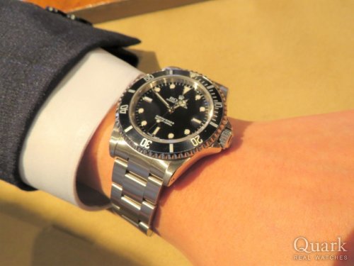 S様 数ある時計店の中からクォーク上野本店をご利用頂き誠に有難うございます。今回ご購入頂いたSUBMARINER Ref.14060Mは以前ご購入して頂いたRef.114060よりもシャープなラグやリューズガードにより大きすぎず、S様のお手元にとてもお似合いでした。またあえてノンクロノメーターにすることによって2段表記になりサブマリーナーの中でも一層シンプルな見た目に仕上がっている事かと存じます。さらにあえて紙の保証書という渋いチョイスはとても素敵でございました。今後末永くお時計をご愛用頂けますようにメンテナンスのご相談はもちろん、ブレスレットの調整や洗浄は無料で行っておりますので、上野へ来られた際にはお気軽にクォーク上野本店をご利用くださいませ。また、ご質問などございましたら長谷部までお気軽にご相談くださいませ。今後とも末永いお付き合いの程、宜しくお願い致します。