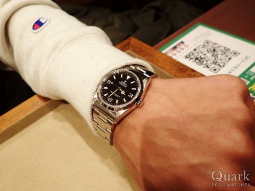S様 この度は、私共クォークをご利用頂き、誠に有難う御座いました。初めのお問い合わせからお日にちが掛かっておりましたが、S様へご希望商品のご案内ができ安心しております。S様の腕元で輝くロレックス・エクスプローラーI、待ちに待った、という事もありますので、今のお気持ちは格別ではないでしょうか。36ミリの小振りなサイズですが、エクスプローラーIは多くの方がご存知で、さり気ないながらも存在感のあるモデルですので、きっと周りの方の目にとまる事と思います。人気上昇中の「トリチウム夜光・シングルロック」仕様、是非その魅力と違いをアピールしてくださいね。また、この度ご購入頂きましたお時計は、20年以上経過している年式ですが、実用性も十分にありますので、是非毎日ご愛用頂き、ロレックスの魅力にはまっていってください。初めの頃は、傷やぶつけたりした時等、様々な事が気になるかと思います。サイズのお直しを含め、ご不明な点やご心配な事等、何か気になる事が御座いましたら是非ご連絡ください。これからもS様に安心してご使用頂けますよう、またご満足頂けますよう努めて参ります。今後とも、末長いお付き合いの程、どうぞ、宜しくお願い致します。 クォーク仙台店 麻生