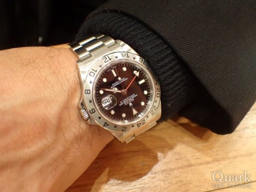 M様 この度はクォーク神戸店をご利用頂き誠にありがとうございました。お選び頂きました、エクスプローラーII Ref.16570は洞窟探検家のために作られ、耐久性・機能性の両面を追求したモデルです。赤い24時間針と24時間ベゼルを使用すれば最大2ヵ国の時間表示が可能です。旧型モデルのシャープなケースデザインで程よいサイジングも魅力ですね。M様に大変良くお似合いでしたので、末永くご愛用下さいませ。アフターサービスとして、ブレスレットの無料洗浄やサイズ調整も行っておりますのでお気軽にお申し付け下さいませ。今後とも、クォーク神戸店を何卒宜しくお願い申し上げます。クォーク神戸店 増田