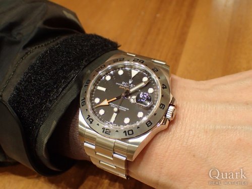 Y様 いつもクォ―ク神戸店をご利用くださいまして、誠にありがとうございます。今回お選び頂きましたエクスプローラーIIの現行モデルは旧型と比べて、ケースサイズが2mm大きくなり、インデックスや針などもボリュームを持たせており、存在感がアップしています。程よく腕元のアクセントになってくれて、カッコいいですね。Y様にとてもよくお似合いでした!今回、長期保証をつけていただきましたので、定期的にメンテナンスをしながら是非末永くご愛用頂けましたら幸いです。ご不明な点などございましたらお気軽にご相談くださいませ。今後共クォーク神戸店を宜しくお願い致します。