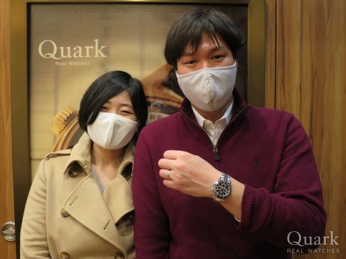 この度ご購入いただきましたデイトナRef.116500LNはロレックススポーツラインナップの旗艦モデルとして、多くの方が憧れを抱くお時計でございます。是非末永くご愛用いただけましたら幸いでございます。記念すべきK様ご夫婦のご結婚記念日にお時計ご購入のお手伝いをさせていただき、私も大変嬉しく思っております。18年後お子様が成人された際に引き継ぐことができましたら、とてもロマンがありますね!お子様もお時計好きに成長してくれることを心より願っております。ブレスレットの洗浄や再調整も無料にて承っておりますので、ご希望がございましたらお気軽にお申しつけくださいませ。今後とも末永いお付き合いの程、何卒よろしくお願い申し上げます。