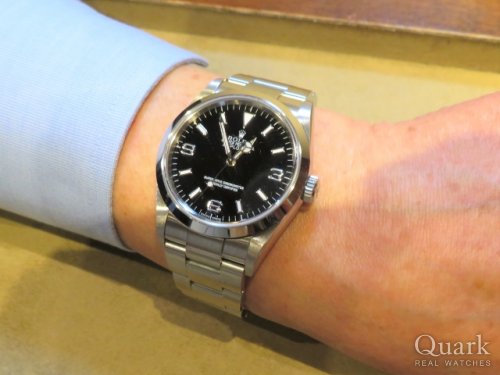 T様 先日は数ある時計店の中からクォーク上野本店をご利用頂き、誠に有難うございます。今回ご購入頂いたEXPLORER Ⅰ Ref.114270は、どんなシーンでもお使い頂ける完成されたデザインで、36mmのケース径は日本人の腕周りにとても似合っており、手首の細さを気になさっていたT様のお手元にもとても良くお似合いでした。また、ブレスレット形状も現行モデルとは違い軽量に作られていますので、手首の疲れにくさも感じられるかと存じます。そしてこれからも末永くお時計をご愛用頂けますようにメンテナンスのご相談はもちろん、ブレスレットの調整や洗浄は無料で行っておりますので、お気軽にクォーク上野本店をご利用して頂けたらと思います。また、何かご質問等御座いましたら長谷部までお気軽にご相談下さいませ。今後とも末永いお付き合いの程、宜しくお願い致します。