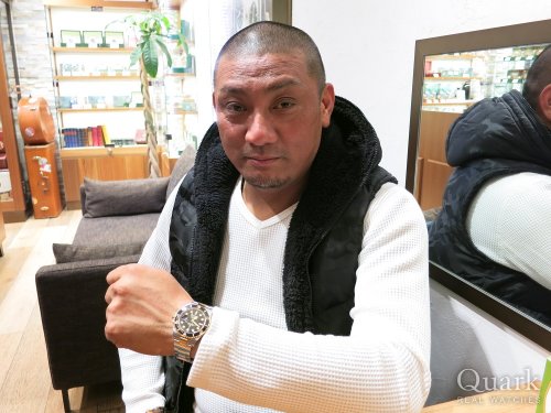 S様、この度はクォーク梅田店をご利用頂き誠に有難うございます。丁度良いタイミングでお声掛け頂き、スムーズにご案内出来て私も大変嬉しく思います。今回ご購入頂きましたサブマリーナーデイト Ref.126613LNは昨年9月に発表されたばかりの最新作モデルで、流通も少なくなかなか手に入れにくいモデルの一つです。イエローゴールドの迫力がS様にとてもよくお似合いですね。今後とも末永くご愛用頂けるようにしっかりとサポートさせて頂きますので何かございましたらお気軽にご相談くださいませ。またのご来店を心よりお待ちしております。