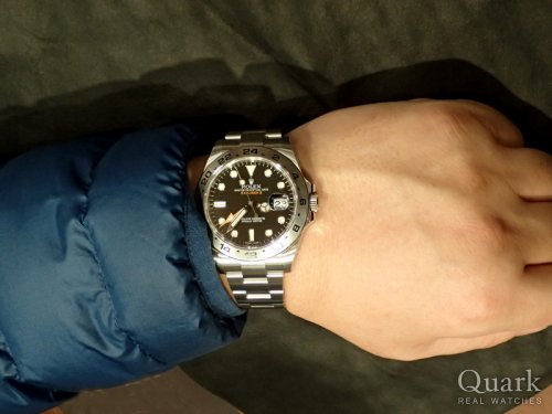 K様 いつもクォーク仙台店をご利用くださいまして誠にありがとうございます。また、お褒めのお言葉を頂戴しまして大変恐縮です。「Ref.216570 エクスプローラーII ブラックダイヤル」は、つけ慣れていらっしゃるモデルかと存じますが、やはり良いモデルは何度使っても良いですね! また、42ミリのケースサイズは迫力があり、K様の腕に大変お似合いでございました。次こそは、長くご愛用いただけると信じております! 今後もしっかり対応いたしますので、どうぞよろしくお願いいたします。