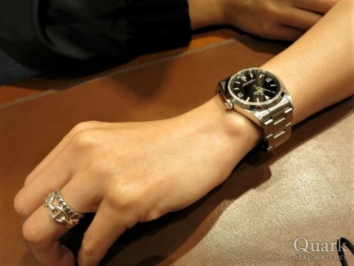 M様、この度はクォーク梅田店をご利用頂きまして誠に有難うございました。お忙しい中、何度もご遠方より足をお運びくださり心より感謝を申し上げます。ご購入頂きました Ref.114270は、2010年ごろまで生産されたエクスプローラーIです。36ミリはこちらのモデルで終了となりましたが、その絶妙なサイズ感で今なお現行モデルに匹敵するほどの人気です。シンプルで様々なアクセサリー類とも相性が良いのも魅力ですよね。今回M様にお喜び頂けて大変嬉しく思います。本当に素敵でとてもお似合いでございましたので、末永くご愛用頂けましたら幸いです。今後もご指名頂けますようしっかりとサポートをさせて頂きます。何かご要望などございましたら、私井内までお気軽にお申し付けくださいませ。また、ブレスレットの洗浄及び調整も無料で行っておりますので、お近くに来られた際には是非共遊びにいらして下さい。心よりお待ち致しております。 クォーク梅田店 井内