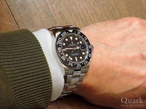 M様 この度はクォーク横浜店をご利用いただき誠にありがとうございます。お選びいただきましたRef.116710LNですが、現行モデルにはない単色のブラックベゼルが注目を集めるモデルです。また、私個人といたしましては製造初期の仕様という点でもオススメの個体となっております。これまでご所有なされたモデルとはデザイン的に異なるかと思いますので、是非ご愛用くださいませ。アフターサービスと致しまして、ブレスレットの無料洗浄も承っております。横浜駅へお越しの際はお気軽にご来店ください。今後とも末永いお付き合いの程、よろしくお願いいたします。