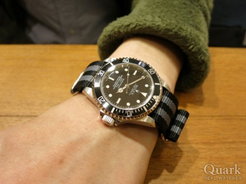 H様、この度はクォーク梅田店をご利用頂きまして誠に有難うございました。お時計をご用意するのにお時間を頂いてしまいましたが、快くお待ち下さり心より感謝を申し上げます。ご購入頂きました Ref.14060Mは、2000年から2011年頃まで生産されていたサブマリーナーのノンデイト仕様です。スッキリとしたデザインと程良いサイズ感で使い勝手に優れた万能モデルです。操作が簡易的なのもこちらのモデルの良いところですよね。お持ち頂いておられましたラバーベルトとの相性も抜群でかっこいいです!H様のお腕元にフィットされとてもお似合いでございました。末永くご愛用頂けましたら幸いです。今後もご指名頂けますようしっかりとサポートをさせて頂きます。何かご要望などございましたら、私井内までお気軽にお申し付けくださいませ。また、ブレスレットの洗浄及び調整も無料で行っておりますので、お近くに来られた際には是非共遊びにいらして下さい。心よりお待ち致しております。 クォーク梅田店 井内