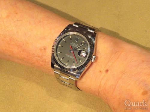 S様 この度は数ある時計店からクォーク上野本店をご利用いただき誠にありがとうございます。ご購入いただきましたTURN-O-GRAPH Ref.116264は2004年から2013年まで製造されていた人気のモデルで御座います。エンボス加工が施されたサンダーバード固有の形状から、フルーテッドベゼルのように美しいカッティングが施された魅力的なお時計となります。中古市場でも数が少なくなってきているモデルですので、是非、大切にご使用いただければと思います。また、ブレスレットの洗浄及び調整も無料で行っておりますので、お近くにお越しの際は遊びにいらしてくださいませ。お使いいただく上で何かご不明な点等ございましたら、また林までご相談ください。今後とも末永いお付き合いの程よろしくお願いいたします。