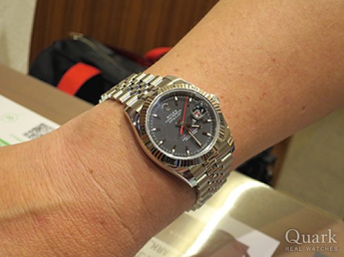 H様 この度はクォーク名古屋店をご利用頂き、誠に有難う御座います。H様の憧れ御時計のご購入に携わらせて頂く事が出来、大変光栄に思います。生産終了してから徐々に入荷も減り、特にジュビリーブレス仕様はあまり入荷しませんので、本当にタイミング良くご案内出来て、良かったと感じております。赤色で統一したデザインは、ドレスウォッチながらスポーティーさが感じられますね。幅広いシーンで末永くご愛用頂けると存じます。ご使用される中で、ご不明な点など御座いましたら、お気軽にご相談下さいませ。今後とも末長いお付き合いの程、宜しくお願い致します。