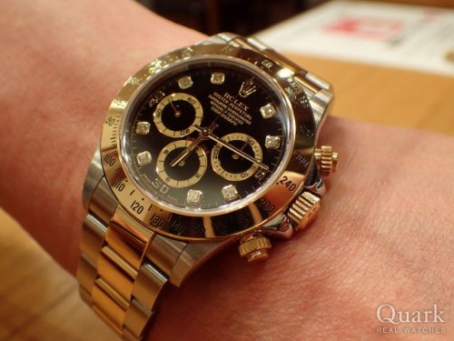 M様、いつも大変お世話になっております。お忙しい中、ご来店頂き誠にありがとうございました。エル・プリメロ搭載のデイトナは、近年人気で相場も上がってきております。コンビネーションに8Pダイヤの豪華な雰囲気が、M様に似合っておりました!お持ちの18金ネックレスとの相性も抜群に良いです。ブレスレットの無料洗浄を行っておりますので、お気軽にお申し付け下さい。今後とも、クォーク神戸店を何卒宜しくお願い申し上げます。クォーク神戸店 増田