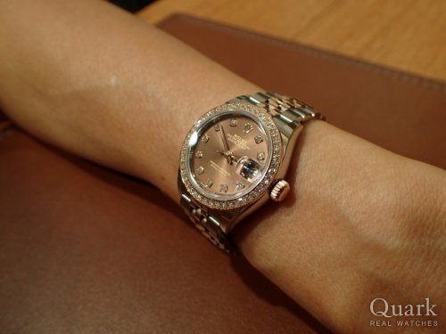 S様、この度はクォーク梅田店をご利用頂きまして誠に有難うございました。ご購入頂きましたモデル Ref.279381RBR(ブラウン)は、SSと18KPG仕様のレディースコンビモデルです。ベゼルや文字盤(10P)にダイヤモンドをあしらっておりとても華やかなです。文字盤のブラウンがまたPGとの相性抜群で飽きることなくご使用頂けます。まさにS様にぴったりな素晴らしいモデルであり、とてもお似合いでございました。末永くご愛用頂けましたら幸いです。今後もご指名頂けますようしっかりとサポートををさせて頂きますので、何かご要望などございましたら私井内までお気軽にお申し付け下さいませ。また、ブレスレットの洗浄及び調整も無料で行っておりますので、お近くに来られた際には是非共お立ち寄り下さいませ。心よりお待ちしております。 クォーク梅田店 井内