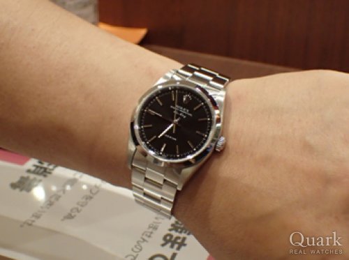 M様 この度はクォーク名古屋店をご利用頂き、誠にありがとう御座います。ご購入頂きました、AIR-KING Ref.14000は、実用時計として相応しい御時計ですね。腕に乗せやすい軽く小振りなサイズや無駄を省いたシンプルなデザインは、シーンを選ぶ事無く、ご愛用頂けると存じます。現行モデルと異なる、スタイリッシュなインデックスは、個人的にも好きなデザインです。これから末永くご愛用頂けます様、私もサポート致しますので、ご使用される中でご不明な点など御座いましたら、お気軽に私までお申し付け下さいませ。今後とも末長いお付き合いの程、宜しくお願い致します。