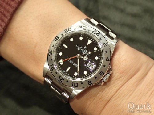 M様、この度はクォーク仙台店をご利用頂きまして誠にありがとうございます。M様がお選びになられたモデル「Ref.16570」は、現状ではケースサイズ径40mmエクスプローラーIIとして最終モデルにあたる、1stモデル「Ref.1655」から数えて第三世代目のロングセラーモデルでございます。シャープな形状や赤色のGMT針のバランスがとても良く、外装部分で鏡面仕上げがされていない点もスポーティーな雰囲気があり、とても好印象でございます。末永くご愛用いただけたら幸いでございます。また、もったいないほどのお褒めのお言葉をいただき、恐悦至極でございます。私のほうこそ、気が早いですが次回M様が「GMT-MASTER II」をご検討される際は、是非ともお手伝いさせていただきたく存じ上げます。尚、私どもではブレス洗浄サービスを行っておりますので、仙台駅方面へお越しの際は、是非お立寄りくださいませ。どうぞ、今後とも変わらぬご愛顧を賜ります様、宜しくお願い申し上げます。 クォーク仙台店 沼澤