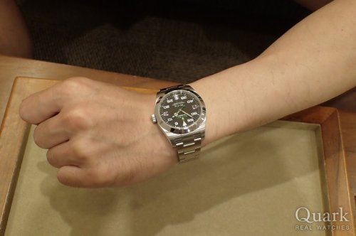 ケースサイズはサブマリーナー等と同じ40ミリですが、シャープな印象を与えるケース形状であるところに惹かれました。また、グリーン、白、イエローという3色使いのダイヤルも素敵であり、将来的に渡す予定の息子も気に入ったので購入を決めました。