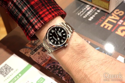 この度はクォーク名古屋店をご利用頂き誠に有難うございます。お越し頂き有難うございました。かねてからオーナー様がご所望されていたエクスプローラーⅠのご購入おめでとうございます!スーツにも合うカッコいいモデルだと思います。またブレスのサイズ調整、ブレスの洗浄は無料で行っている為、ご不明な点などございましたらお気軽にご来店、ご相談下さいませ。今後共、クォークを宜しくお願い致します。
