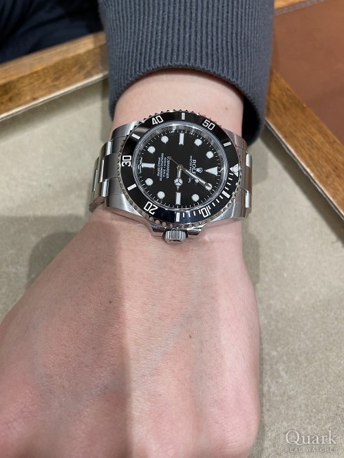 I様、この度はクォーク心斎橋店をご利用頂きまして誠に有難うございます。N様の若さの勢いとご決断力の速さに驚きでした(笑)。I様がお選びになられたRef.114060はケース径40mmサブマリーナーの最終仕様となっており、利便性やデザイン性共に抜群な一本です。I様のお腕元にフィット感抜群でとてもお似合いでした。末永くご愛用いただけましたら幸いでございます。また、ブレスレットの洗浄及び調整も無料で行っておりますので、お近くに来られた際には是非共お立ち寄り下さいませ。心よりお待ちしております。 クォーク心斎橋店 高
