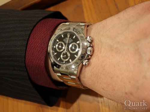 T様 いつもクォーク名古屋店を御利用頂き、誠にありがとうございます。ついにRef.116520を購入されましたね!モデルチェンジ後も人気が衰える事が無く、今でもお問合せの多いモデルとなっております。現行タイプに比べて少しエレガントなデザインになりますので、フォーマルな装いにも合わせやすいと思います。コンビモデルと交代でお使い頂ければ幸いです。今後も大切なお時計をしっかりサポートさせて頂きますので、何か気になることが御座いましたら、遠慮なく御相談下さい。
