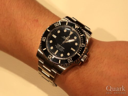 W様、この度はクォーク仙台店をご利用いただきまして誠にありがとうございます。W様がお選びになられた「Ref.114060」は、5桁リファレンスモデル「14060M」からのモデルチェンジにより生産が開始された2012年登場モデルです。前モデルまで採用されていたアルミ製ベゼルディスクから耐傷性や耐蝕性により優れたセラミック製に変更され、その他ではインデックスやリューズガード、ラグ先端の大型化が図られたことで堅牢性・実用性がさらに高まったモデルでございます。末永くご愛用いただけましたら幸いでございます。そして、次回はRef.5513をご用意させていただきますので、是非ご用命いただきたく存じます(笑)また、ご使用に際して気になる点がございましたら、しっかりサポートさせていただきますので、お気軽にお申し付けくださいませ。尚、私どもではブレス洗浄サービスを行っておりますので、仙台駅方面へお越しの際は、是非お立寄りくださいませ。どうぞ、今後とも変わらぬご愛顧を賜ります様、宜しくお願い申し上げます。