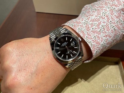 白文字盤を探してクォーク上野本店に来店しましたが、白文字盤が無くジュビリーブレスの黒文字盤が紹介可能との事で抑えてもらい購入しました。