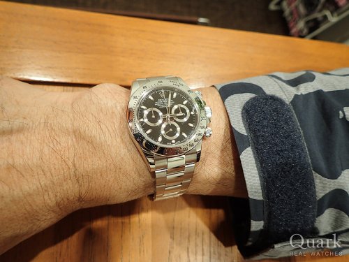 I様 いつもクォーク名古屋店をご利用頂き、誠にありがとうございます。以前からRef.116520のご購入を検討されていましたが、遂に購入されましたね!特に最終仕様の鏡面バックルは1年程の製造期間となりますので、今後も資産性として楽しみですね。現行モデルとは雰囲気の異なるデザインとなり、落ち着いたデザインとなりますので、様々なシーンでお使いいただけると思います。他のお時計同様、しっかりサポートに努めさせて頂きますので、何か気になる事が御座いましたら、遠慮なく御相談下さい。