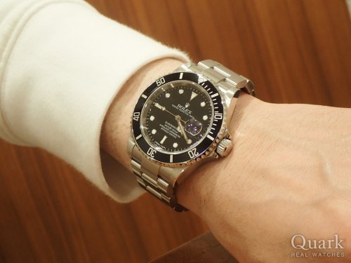 友人がRef.14060Mを着けていてカッコいいと思ったのと、着け心地など魅力的に思えたので、今回のRef.16610の購入を決意しました。今迄手を出してこなかったGMT-MASTER IIの購入に始まり、遂にはSUBMARINERのRef.16610に手を出しました。これで今迄着けて来なかったROLEXのスポーツモデルはYACHT-MASTERのみとなりました。SUBMARINERはRef.116610LNとも迷いましたが、ケース形状・軽さなど使い勝手やディティールを考えるとRef.16610の方が私好みに思えたので選びました。それにGMT-MASTER IIのRef.116710LNを持っているのもRef.16610を選んだ大きな決め手です。