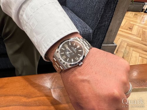 M様 この度は数ある時計店からクォーク名古屋店をご利用いただき誠にありがとうございます。ご購入いただきました『Ref.214270』は2011年式の個体で、夜光無しのモデルでございます。こちらは2010年~2016年にかけて販売された旧型で、3・6・9のインデックスの夜光が入っていない仕様のモデルです。M様はEXPLORERⅠとDAYTONAで迷われておりましたが、EXPLORERⅠは人気急上昇中のモデルとなりますので、M様の今回のご購入は後悔のない一本になると思います! またブレス洗浄、タイムチェックも無料で行っておりますので、お近くにお越しの際は遊びにいらしてくださいませ。お使いいただく上で何かご不明な点等ございましたら、また久保までご相談ください。