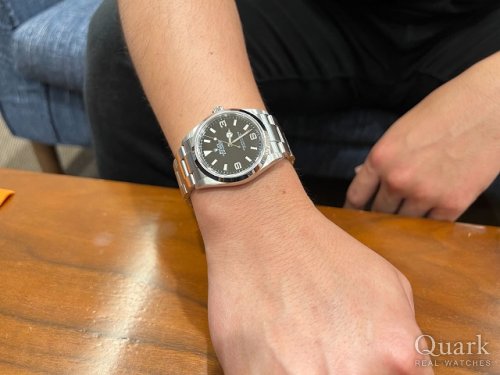 Y様 この度は数ある時計店からクォーク名古屋店をご利用いただき誠にありがとうございます。ご購入いただきました『Ref.114270』はブラックダイヤルの EXPLORERⅠとなっております。ステンレス素材で堅牢、尚且つ、ロレックスのスポーツモデルの中でもシンプルで飽きのこないデザインが特徴で、どんなシーンやスタイルにも合わせやすい人気のモデルでございます。またY様はこちらのモデルを購入されるまでに4度、クォーク名古屋店に足を運んで頂き、選択して頂きました。この厳選して決めて頂いた個体なら、この先も後悔の無い最良の選択だと思います。またブレス洗浄、タイムチェックも無料で行っておりますので、お近くにお越しの際は遊びにいらしてくださいませ。お使いいただく上で何かご不明な点等ございましたら、また久保までご相談ください。今後とも末永いお付き合いの程よろしくお願いいたします。
