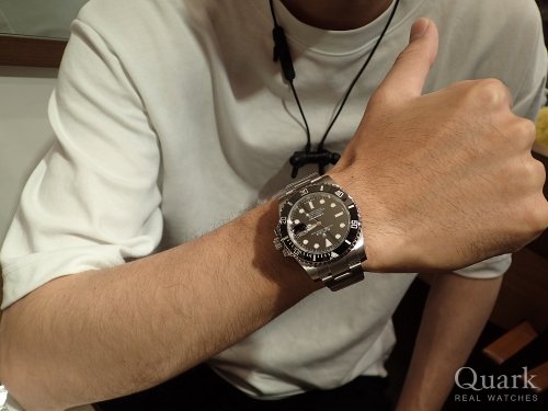 いま使っているクロノグラフの時計も気に入っていますが、やっぱりこのサブマリーナーはカッコいいですね!ずっと欲しくて、購入を考えていたモデルなので今回、クォークで手に入れられて良かったです。ずっと大切に使おうと思い、オーバーホール工賃付きの長い保証にもしました。