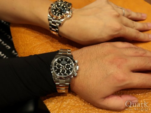 S様 この度はクォーク仙台店をご利用くださいまして誠にありがとうございます。スポーツモデル最高峰と言っても過言ではないデイトナ。なかでも評価の高いオールステンレスモデルでございますね。「Ref.116520」は、現在のところ最後のステンレスベゼルでございますので、今後のモデル動向が注目されるのではないでしょうか。これからはメンテナンス等でしっかり対応いたしますので、よろしくお願いいたします。T様とも遊びにいらしてください!
