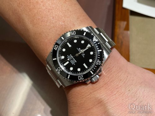 S様 いつもクォーク上野本店をご利用いただき誠にありがとうございます。今回ご購入いただきましたお時計、SUBMARINER Ref.124060は2020年より販売が開始された人気のダイバーズモデルでございます。こちらのモデルには最新のCAL.3230を搭載しており、パワーリザーブも48時間から70時間と大幅に向上しております!更に、S様が以前ご使用されておりましたRef.14060よりもケース径が1mm程大きくなり、より迫力が増しております。製造年数に関してもS様のご期待に添える事が出来た事、私(林)も嬉しく思っております。ブレスレットの洗浄及び調整も無料で行っておりますので、お近くにお越しの際は遊びにいらしてくださいませ。お使いいただく上で何かご不明な点等ございましたら、また林までご相談ください。今後とも末永いお付き合いの程よろしくお願いいたします。