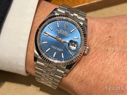 T様 この度は数ある時計店からクォーク上野本店をご利用いただき誠にありがとうございます。初ロレックス!!ご購入誠におめでとうございます。T様が探されていた念願のお時計をタイミング良くお渡しできたこと私(成瀬)も大変嬉しく思います。ご購入いただきましたDATEJUST36 Ref.126234ブライトブルーはフルーテッドベゼルとジュビリーブレスの組み合わせがロレックスらしい上品でお洒落な印象を与えてくれる素敵なお時計でございます。オンオフ問わずに幅広いシーンでご着用できるので、これからロレックスライフを存分にお楽しみくださいませ。何かございましたら成瀬までご相談ください。いつでもご相談に乗ります!T様の良きアドバイザーになれるようにこれからも精進してまいりますので、今後とも末永いお付き合いの程よろしくお願いいたします。