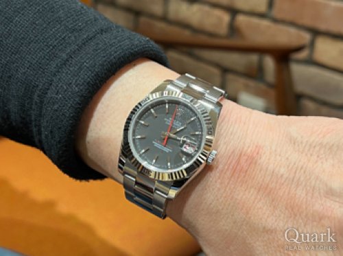 H様 この度はクォーク名古屋店をご利用頂き、誠にありがとう御座います。数ある時計店の中からお悩み頂いた中で当社にてご決断頂き、大変嬉しく思います。昔に悩まれたモデルという事もあり、想い入れのあるロレックスになりますね。生産終了モデルのターノグラフは、年々入荷自体少なくなっております。その中でもH様に気に入って頂けるコンディションをご案内でき、本当に良かったです。今後もご使用される中でご相談など御座いましたら、ご遠慮なく私までお申し付け下さいませ。今後とも末永いお付き合いの程、宜しくお願い致します。