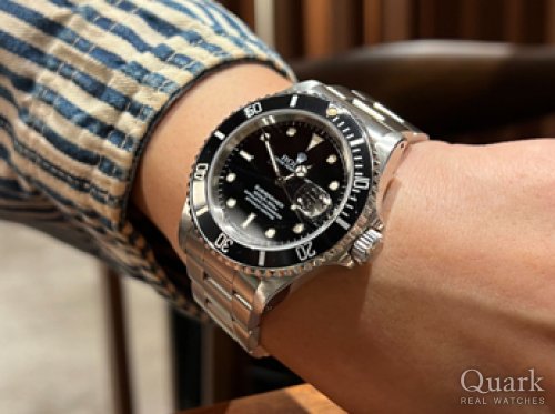 K様 いつもクォーク名古屋店をご利用頂き、誠にありがとうございます。今回はいつも以上に沢山悩まれましたね!今まで色々なモデルを所有されてきましたが、やっぱり最終的に落ち着いたのがK様の原点であるサブマリーナーに戻りましたね。5桁モデルのサイズ感やシャープさがK様の腕元には収まりが抜群に良いですね!ほんのり経年変化したベゼルやトリチウムの焼け感も全体的にあり、雰囲気もある魅力的な一本だと思います。これからも末永くご愛用頂けます様、私も努めて参りますので、今後もご遠慮なくお申し付け下さいませ。今後とも末永いお付き合いの程、宜しくお願い致します。