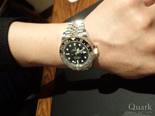 新作のGMT-MASTERⅡを店長に取り寄せて頂き、早速、実機を拝見しましたが、一目惚れをしてそのまま購入してしまいました。黒×グレーの落ち着いたベゼルカラーと高級感のあるジュビリーブレスの組み合わせが本当に素晴らしいですね!想像以上でした!