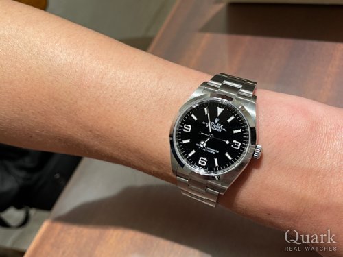 A様 この度は数ある時計店からクォーク上野本店をご利用いただき誠にありがとうございます。この度ご購入いただきました EXPLORER Ref.124270は2021年に生産が開始された36mmサイズ径のお時計でございます。2010年から36mmから39mmと大きくなり、サイズの変化を惜しむ声もありましたが、2021年に36mmサイズが復活した事で熱狂的なロレックスファンの人気に火が付きました。今回、ロレックスを購入するのは初めてとの事でA様に素敵なお時計をご紹介出来た事嬉しく思います。ブレスレットの洗浄及び調整も無料で行っておりますので、お近くにお越しの際は遊びにいらしてくださいませ。お使いいただく上で何かご不明な点等ございましたら、また林までご相談ください。今後とも末永いお付き合いの程よろしくお願いいたします。
