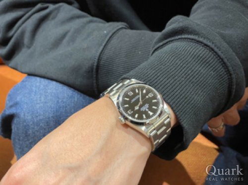 K様 いつもクォーク名古屋栄店をご利用頂き、誠にありがとうございます。いつもご相談して下さり、心から嬉しく思っております。今回は以前にも所有していたRef.114270ですが、やっぱり収まりの良い36mmサイズ感や腕に着けた時の軽さが忘れられないですかね。現行モデルの36mmも人気ですが、今でも引けを取らない程、多くのファンが多いモデルです。今後も引き続き、K様のロレックスライフを楽しんで頂ける様、サポート致しますので、何なりとお申し付けくださいませ。今後とも末永いお付き合いの程、宜しくお願い致します。クォーク名古屋栄店 垣見