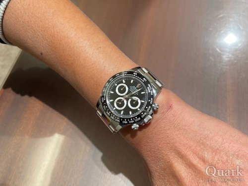 F様 この度は数ある時計店の中からクォーク上野本店をご利用いただき誠にありがとうございます。念願のデイトナ購入おめでとうございます!惜しまれながらも今年、生産が終了してしまいましたが、生産終了した今尚、熱狂的なロレックスファンからの支持が高いこちらのモデル。耐蝕性と耐傷性に優れ、紫外線による影響を受けにくいセラミック素材のベゼルを使用した事で日常でのご使用でも活躍してくれます。2023年製の個体は日々少なくなってきておりますので、大切にご使用いただけますと幸いです。ブレスレットの洗浄及び調整も無料で行っておりますので、お近くにお越しの際は遊びにいらしてくださいませ。お使いいただく上で何かご不明な点等ございましたら、また林までご相談ください。今後とも末永いお付き合いの程よろしくお願いいたします。