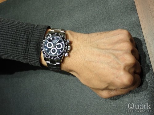 M様 この度はクォーク名古屋駅店をご利用頂き、誠にありがとうございます。念願のRef.116500LNですね!私も新作が気になりますが、やはり旧作のベゼルデザインを好まれるお客様は多いですね。機能性・デザイン・ステイタスのどれをとっても素晴らしい1本になりますので、永くご愛用頂ければ幸いです。私も名古屋駅店におりますので、またお時間がございましたら、お気軽にお立ち寄り下さい。引き続きご愛顧の程、宜しくお願い申し上げます。
