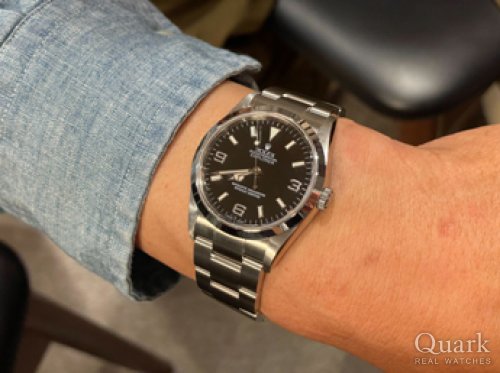 S様 この度はクォーク名古屋店をご利用頂き、誠にありがとうございます。39mmサイズとも見比べて頂きましたが、気に入って頂ける御時計が見つかりとても嬉しく思います。Ref.114270の小振りで軽さのある造りは、現行モデルに引きを取らない程、根強い人気があります。普段使いから幅広いシーンでご愛用頂けますので、末永くご愛用頂ければ幸いです。S様の雰囲気にもとても良くお似合いでございました。お近くへお立ち寄りの際は、ブレス洗浄を兼ねてお気軽に遊びにいらして下さい。今後とも末永いお付き合いの程、よろしくお願い致します。