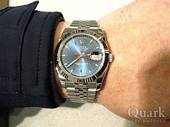 ブルーのダイヤルは流通量が少なく、ジュビリーブレスの組み合わせとなると、紹介が難しくなると思っておりましたが