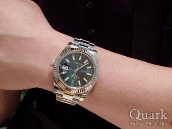 Y様 この度は貴重なお休みにクォークをご利用頂きまして、誠に有難うございます。ご購入にあたりいろいろお悩みでいらっしゃいましたが、じっくりお話しさせて頂き、気持ちよくお求め頂けたこと本当に嬉しく思っております。また、コメントでお褒めのお言葉まで頂戴し、重ねて御礼申し上げます。デイトジャストⅡのブルー文字盤は光の反射で濃淡が感じられ、とても深みのある文字盤になります。スーツでお仕事をされるとも伺いましたので、是非たくさんご使用頂きまして、楽しいロレックスライフをご堪能頂けましたら幸いでございます。今後とも末永いお付き合いの程、宜しくお願い致します。 クォーク横浜店 尾崎