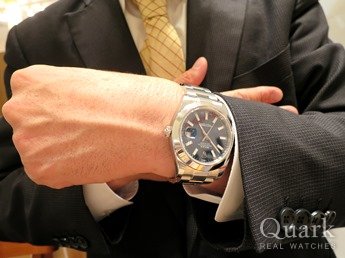 スポーツモデルも検討していましたが、仕事の時も着用するので、スーツとの相性が良いということもあり、娘が私の為に選んでくれたブルー文字盤のDATE JUST II に決めました。