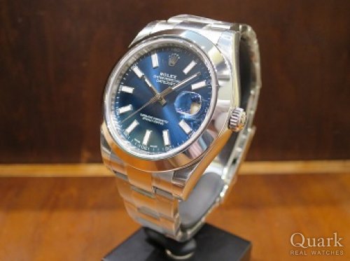 いつもクォークをご利用頂き、誠にありがとうございます。少ない個体の青文字盤のデイトジャストII、今回で青の色が入るモデルは4本目でしょうか。また、今回の青は前回とは違うサンレイダイヤルですので斜めから見ると若干黒色に見えるなど、二つ楽しめる文字盤でもあります。深みのある良い色ですね。いつも大切にお使い頂き、時計自身も嬉しい事と思います。今後とも末永いお付き合い宜しくお願い致します。