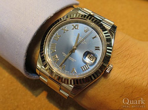 前回の『DATEJUST(ホワイトローマ)』購入後、ブルーダイヤルもいいなと思っていた。『DATEJUST II(ブルーローマ)』のダイヤルが上品な色で、サイズ感も良かったのが購入の決め手です。