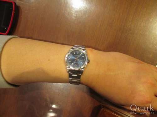 S様 日頃より私共クォークをご利用頂き、誠に有難う御座います。S様には10年以上のお付き合いを頂き、その間様々なモデルをご愛用頂いておりますが、今回お選び頂きましたエアキングはベゼルデザインがポイントですね。シンプルなデザインが魅力と言われるエアキングですが、エンジンターンドベゼルを搭載しておりますので、シンプルな中にも個性的で一味違った雰囲気が楽しめる1本かと思います。ダイヤルのブルーは、本日の装いにピッタリでしたが、スーツ等にも合わせやすいカラーですので、是非、色んな服装に合わせてご愛用頂けましたら幸いです。また、本日も貴重なお時間を頂戴し、楽しくお話させて頂き有難う御座います。仙台にお越しの際は、是非お立ち寄りください。スタッフ一同、心よりお待ち致しております。今後とも、末長いお付き合いの程、どうぞ、宜しくお願い致します。 クォーク仙台店 麻生