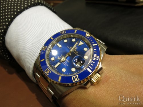 Y様、この度はサブマリーナーRef.116613LBのお買い上げ誠にありがとうございます。その後、使い心地はいかがでしょうか。ブレスレットのサイズやその他、ご不便等ございましたらお気軽にお申し付け下さいませ。今回お選び頂きましたブルーサブマリーナーは、光が当たる角度によって様々なブルーの色合いを表現してくれるとてもキレイなモデルです。グリーンサブマリーナも良いモデルですが、Y様の雰囲気にはブルーサブマリーナーがとてもお似合いでございました。今後ともクォーク心斎橋店を宜しくお願い致します。 クォーク心斎橋店 店長 西口